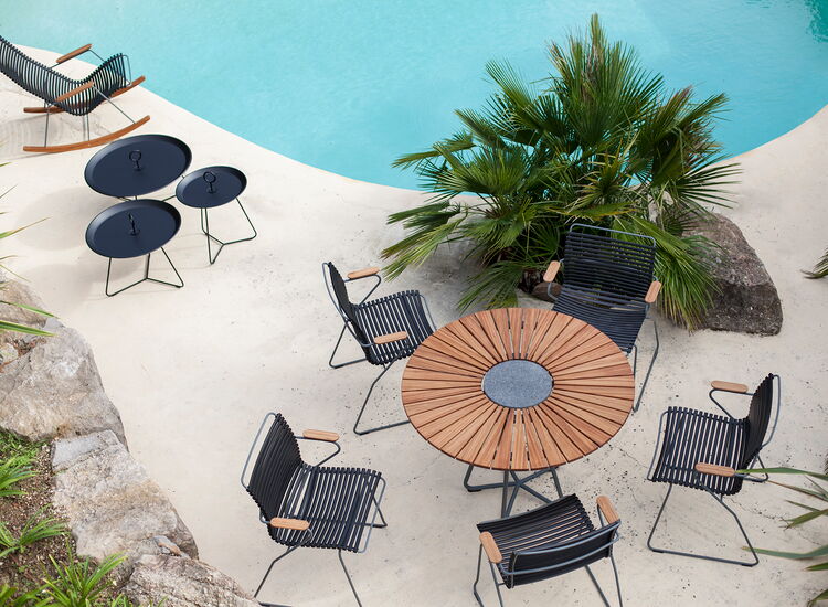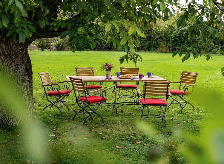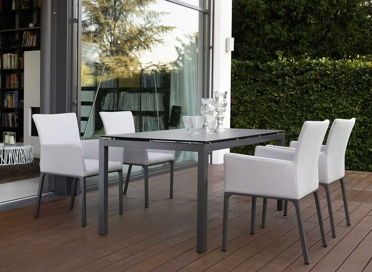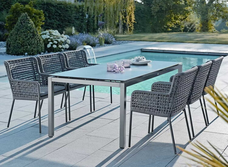 Mit hochwertigen Outdoor-Tischen oder -Stühlen entsteht ein Essplatz unter freiem Himmel, an dem man sich genauso gern aufhält wie im Haus.